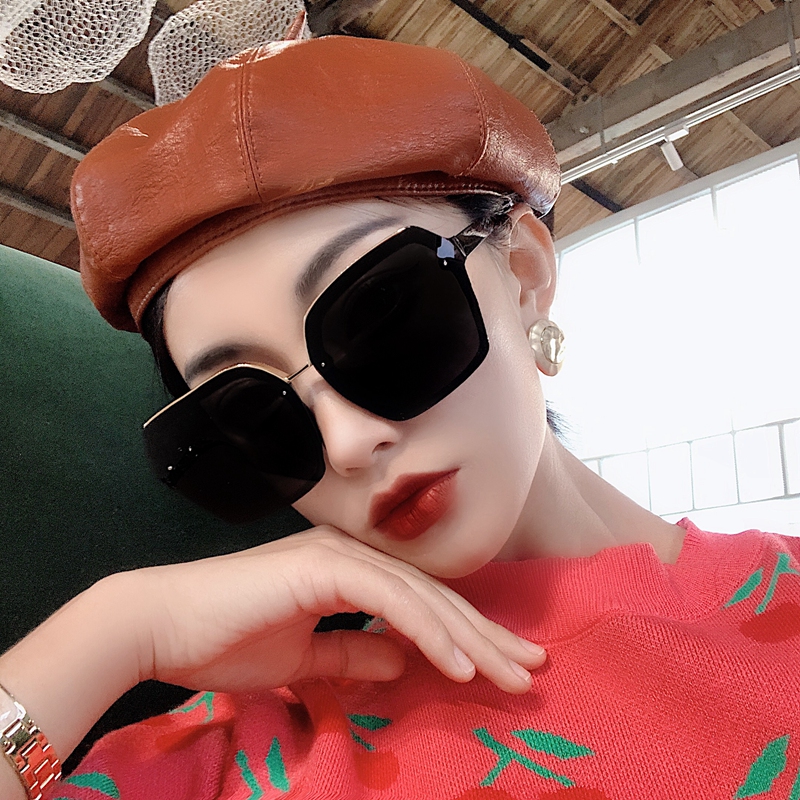 Long face sunglasses new large box round face polarized ink mirror female trendy square Korean version wave black mesh red glasses