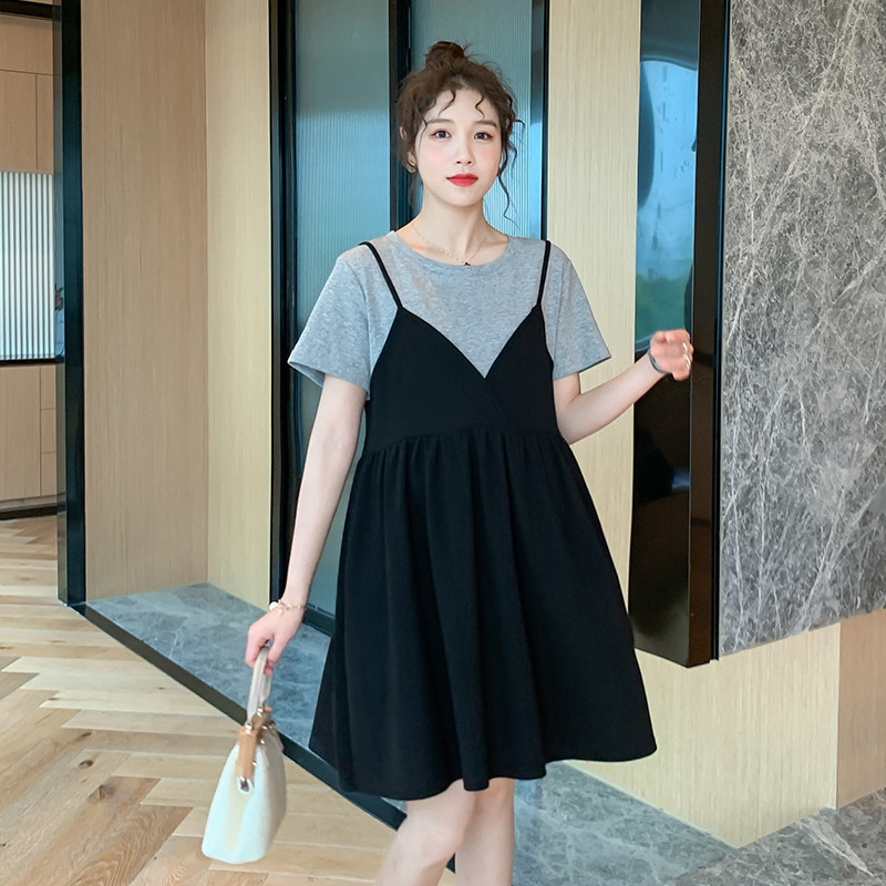 Maternity dress 2021 summer new small Korean version loose fake two-piece slimming and age-reducing pure cotton T-shirt skirt