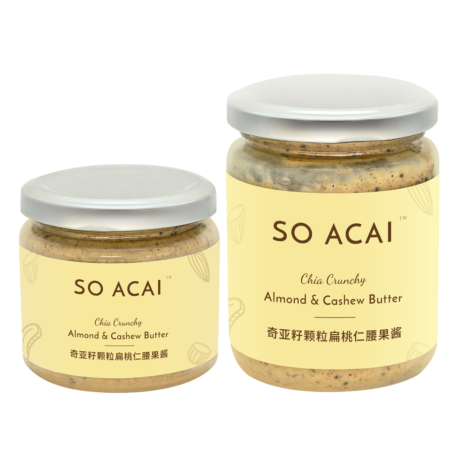 SO ACAI chia seed jam granules almond waist NutButter nuts almond sauce satiated belly fitness ketogenic