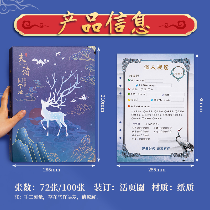 Ancient style graduation commemorative book Primary school student sixth grade female Korean version loose-leaf book Chinese style cute graduation commemorative book Junior high school memoir Girl heart message book Creative personality male simple net red graduation commemorative book