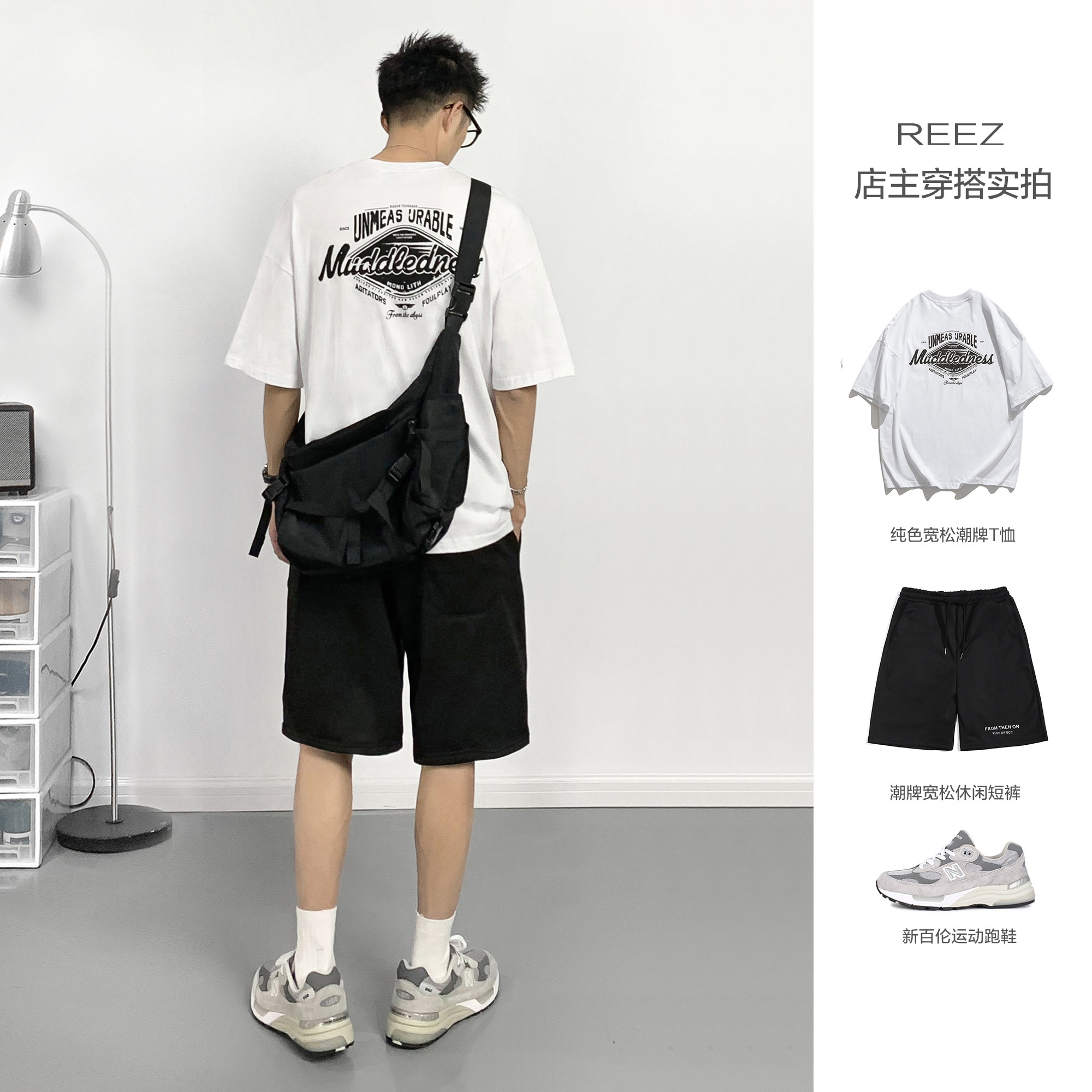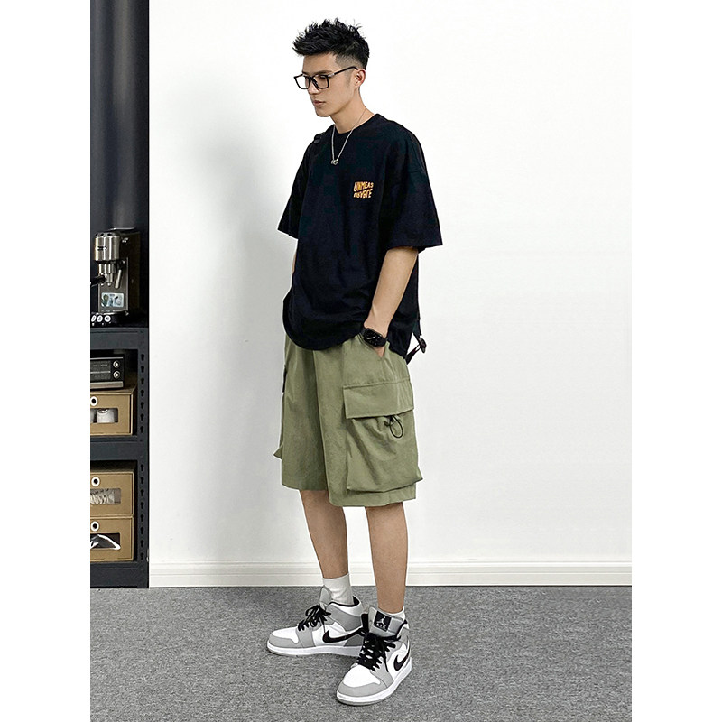 REEZ (shopkeeper wears a hitch) Japanese T-shirt male short sleeve Summer American Tide Card Printed INS Loose 50% Sleevy