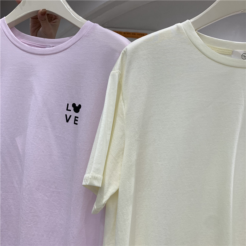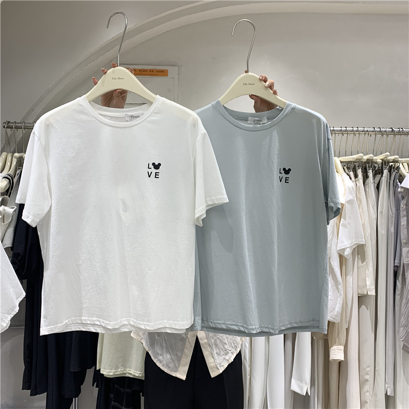 zhe show2021 summer new Korean version of the round neck simple girly print T-shirt women's short-sleeved loose top