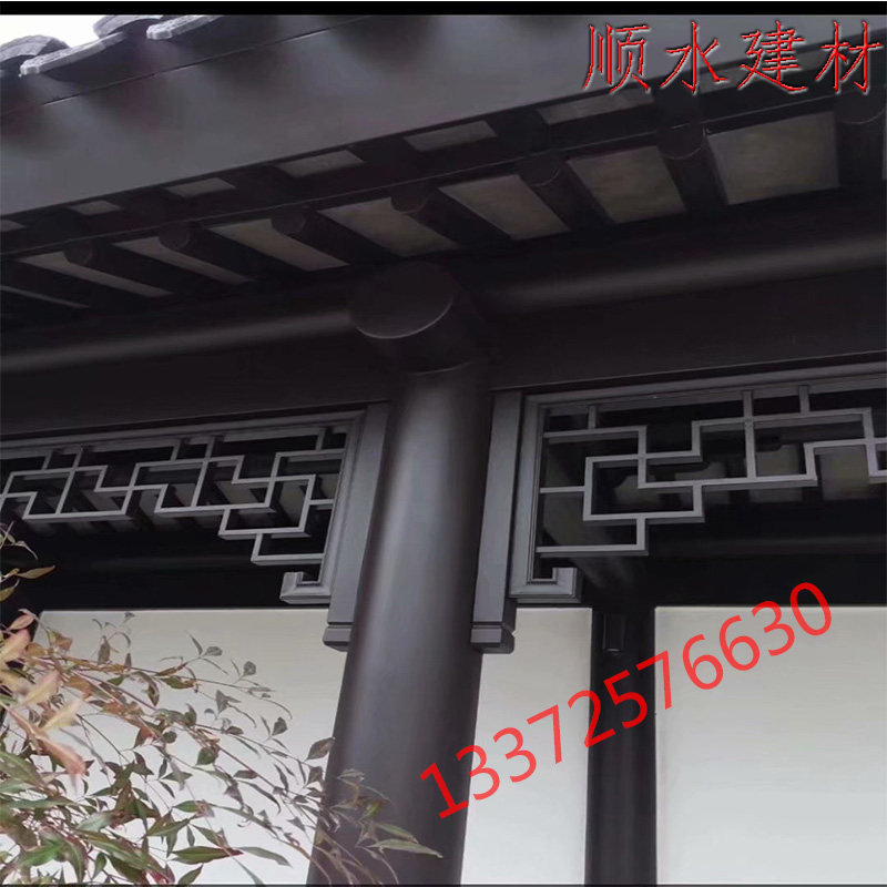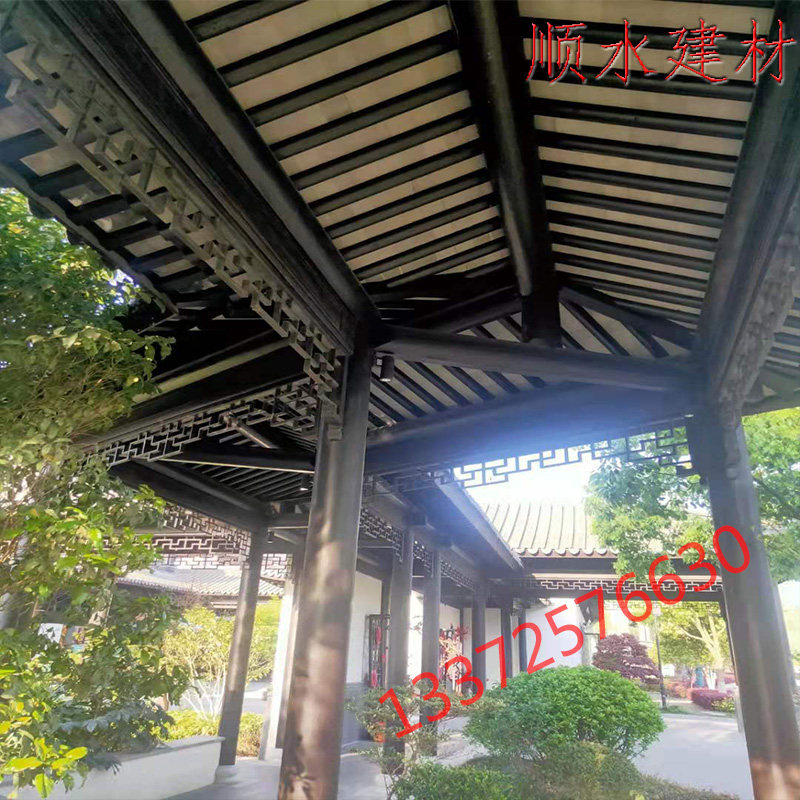 Aluminum alloy ancient construction Chinese style villa antique aluminum components wood tandem porch Back to Gallery Beauty leaning on the railing Hexagonal pavilion