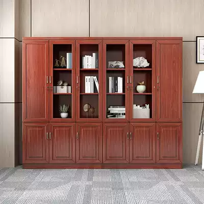 Office document bookcase Floor-to-ceiling data cabinet Glass door data rack with drawer Assembled wooden collection storage cabinet
