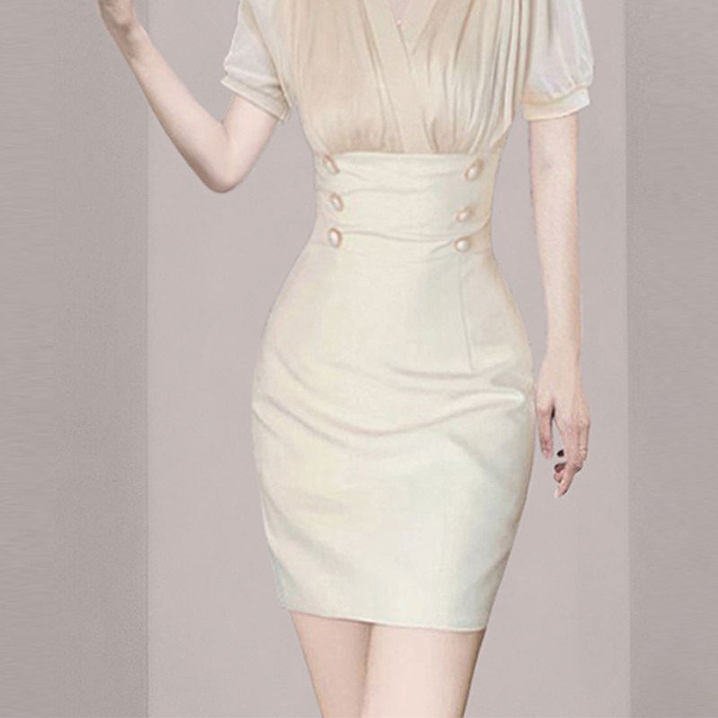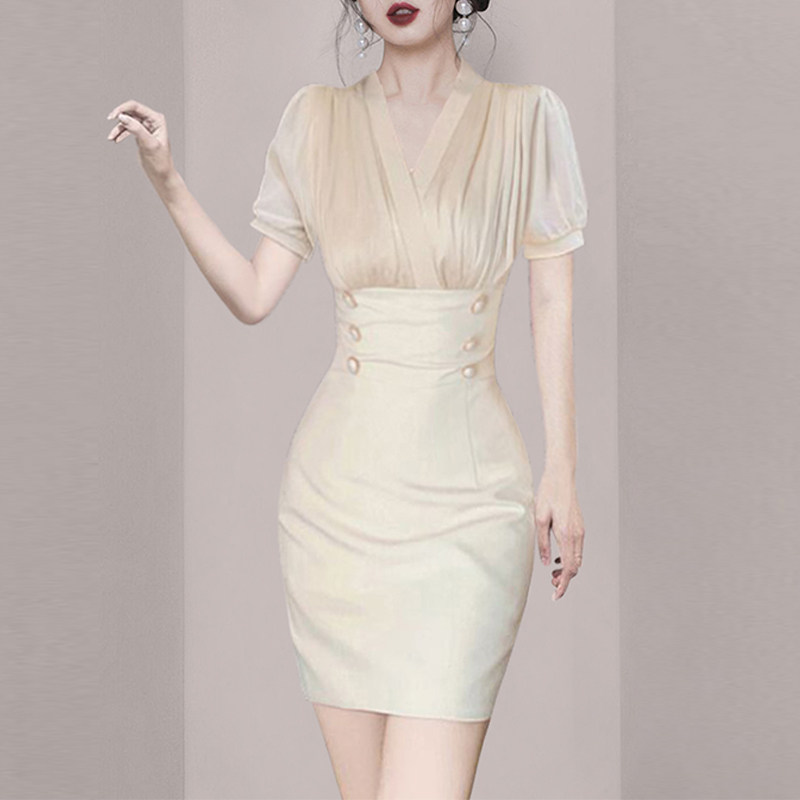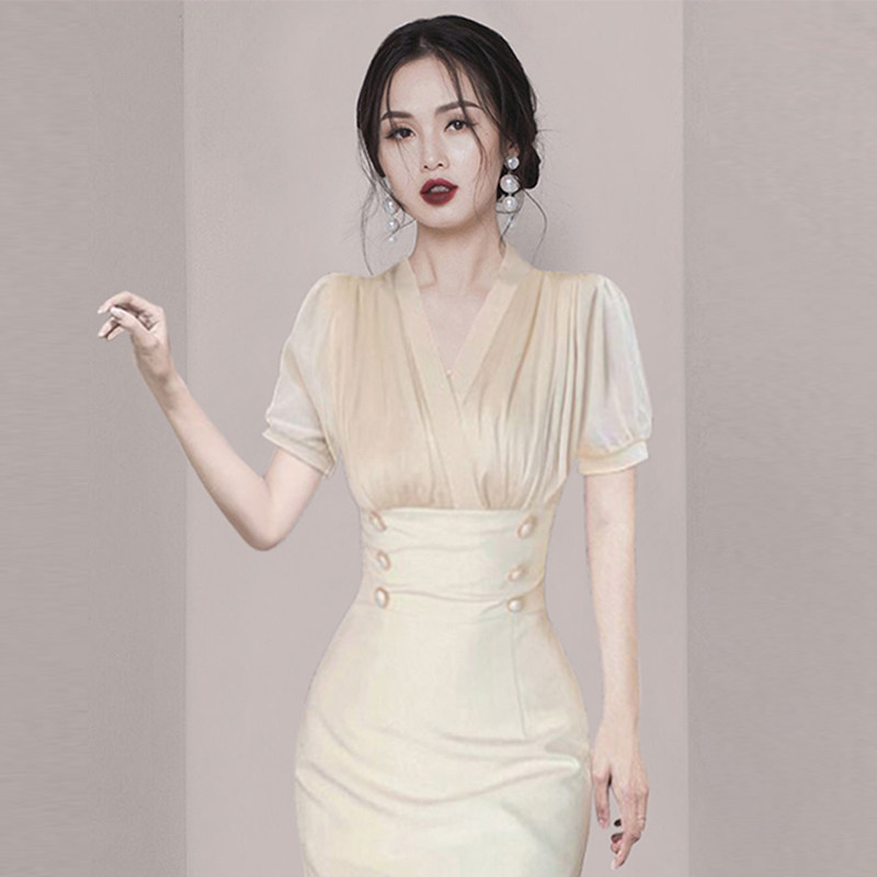 High - end temperament French - style bubble sleeve dress 2023 new menu - shake skirt in summer