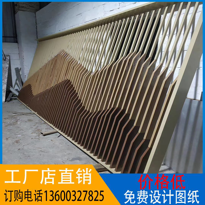 Aluminum square pass factory customized ceiling shape hollow carving wood grain punching door head aluminum window grille partition board
