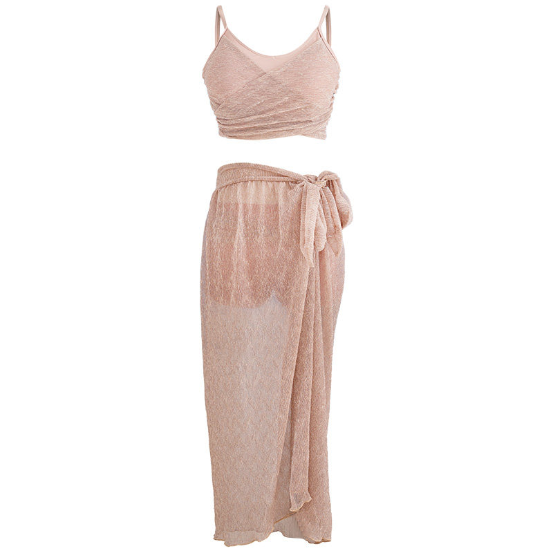 2021 new split body swimsuit female summer show thin cover belly sexy long skirt boxer pants small chest gather fairy fan vacation