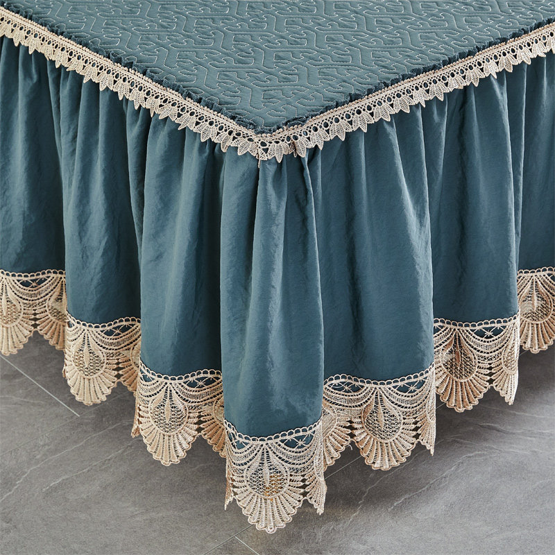 2021 European luxury latex high-end ice silk mat summer bed cover with bed skirt three-piece washable summer bed sheet