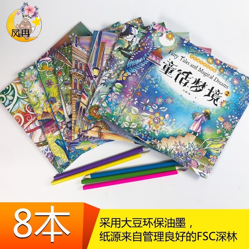 English version of Secret Garden 100-color tin box colored pencils English three-book set No colored pencils English version Magic Forest 48-color tin box colored pencils English version Lost Ocean 48