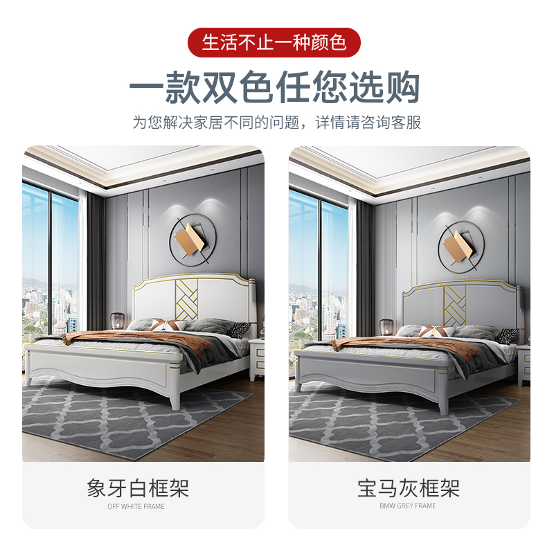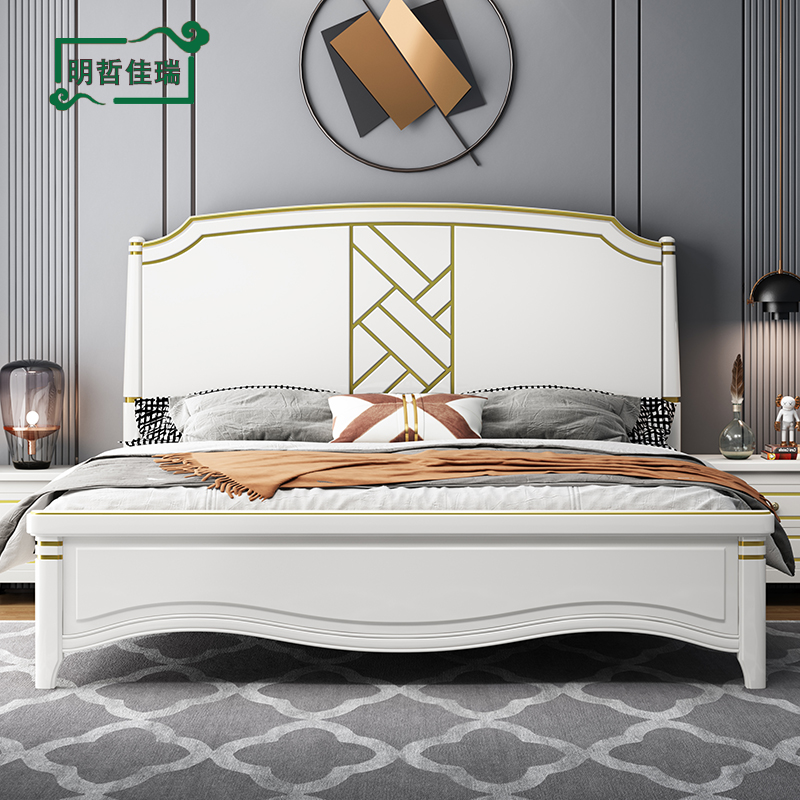 American light luxury full solid wood bed 1 8 meters single double bed Modern simple white 1 5m master bedroom storage princess bed