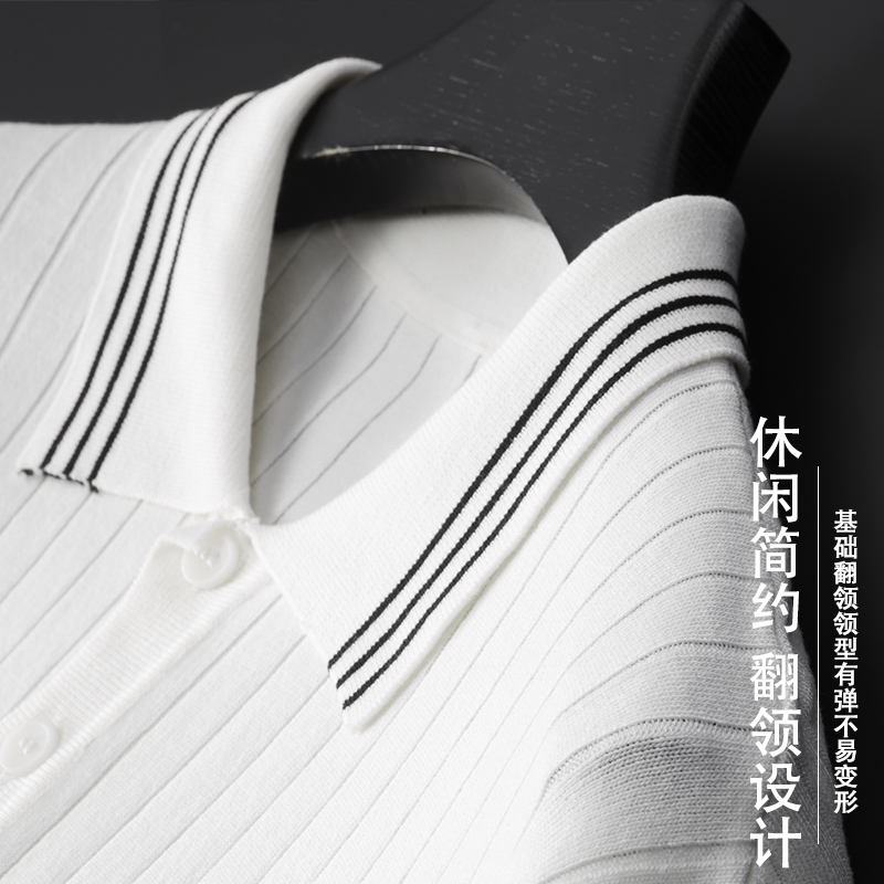 Light Extravagant Trend Summer Ice Silk Polo Shirt Turtlenecks Half Sleeve Men Loose Knit Sweatshirt Thin-style Japanese short sleeve T-shirt
