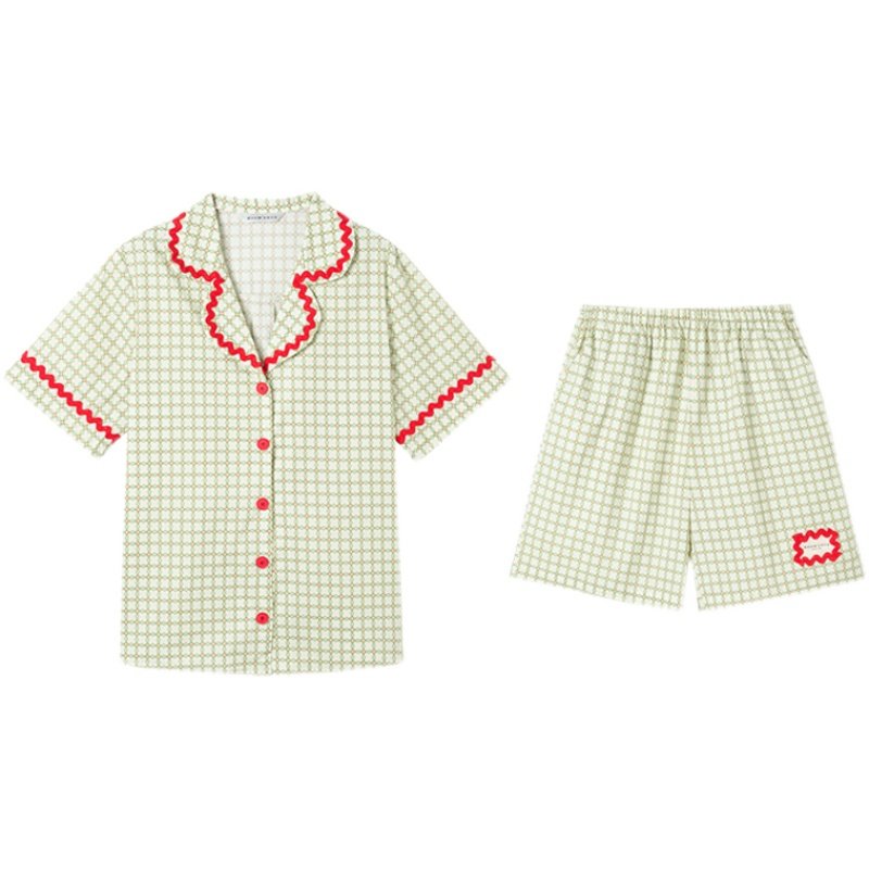 RooMance Rumansi original plaid cotton pajamas women's summer short-sleeved shorts loose home clothes two-piece set