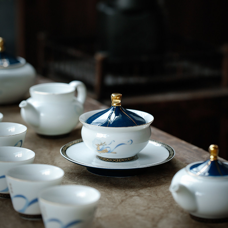 Dehua Ceramic Creative Elegant Hand-painted Jinxin Silk Road Kung Fu Tea Set Chinese Small Tea Pot Gift Box Set