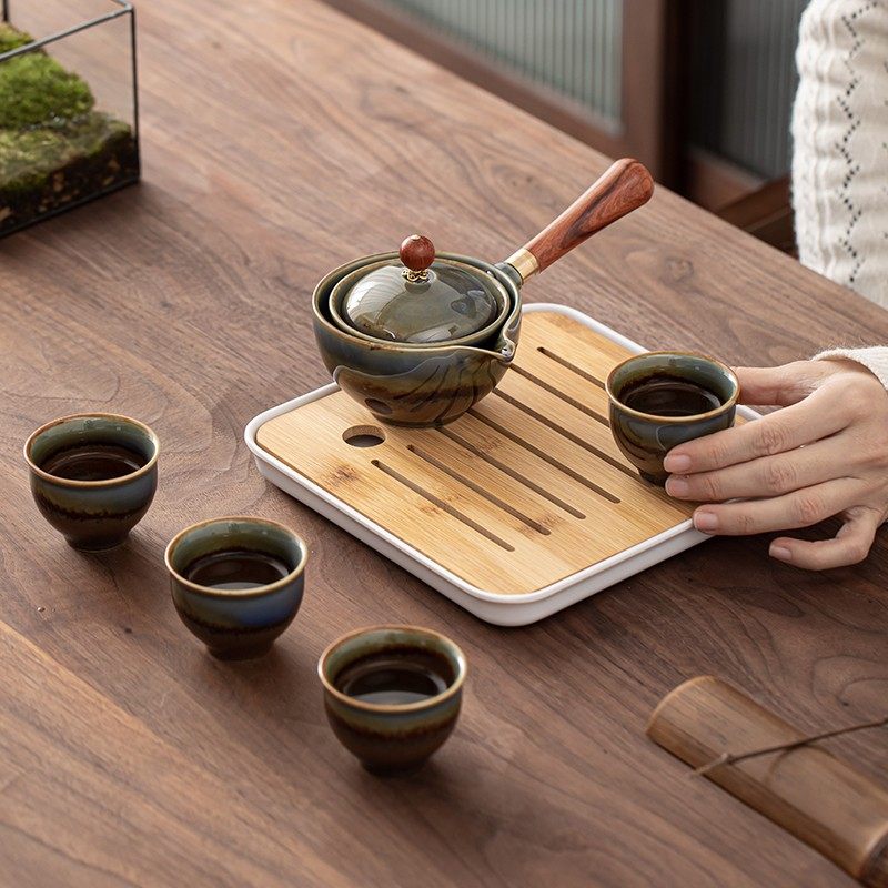 Travel Kung Fu Tea Set Chinese Automatic Tea Cup Shake a Shake Tea Maker Complete Set of Anti-scalding Hand Ceramic Xiaoyao Teapot