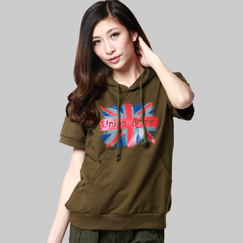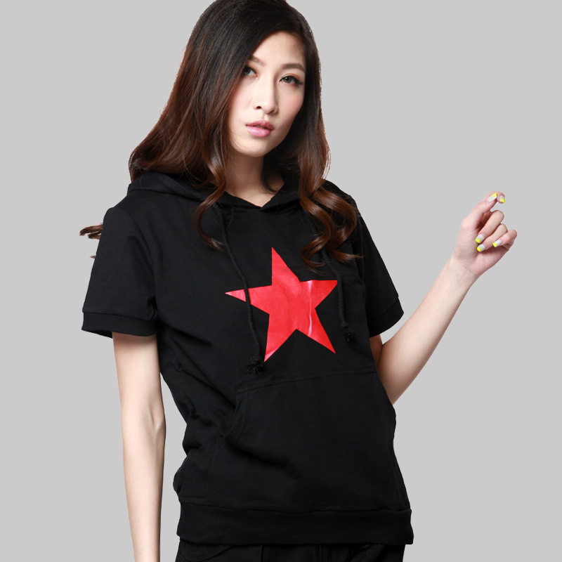 Co-Allied Outdoor Army Meme Lady Red Five Star Hoodie Short Sleeve T-shirt Woman Outdoor Fashion Pure Cotton Printed Thick Cotton T Tide