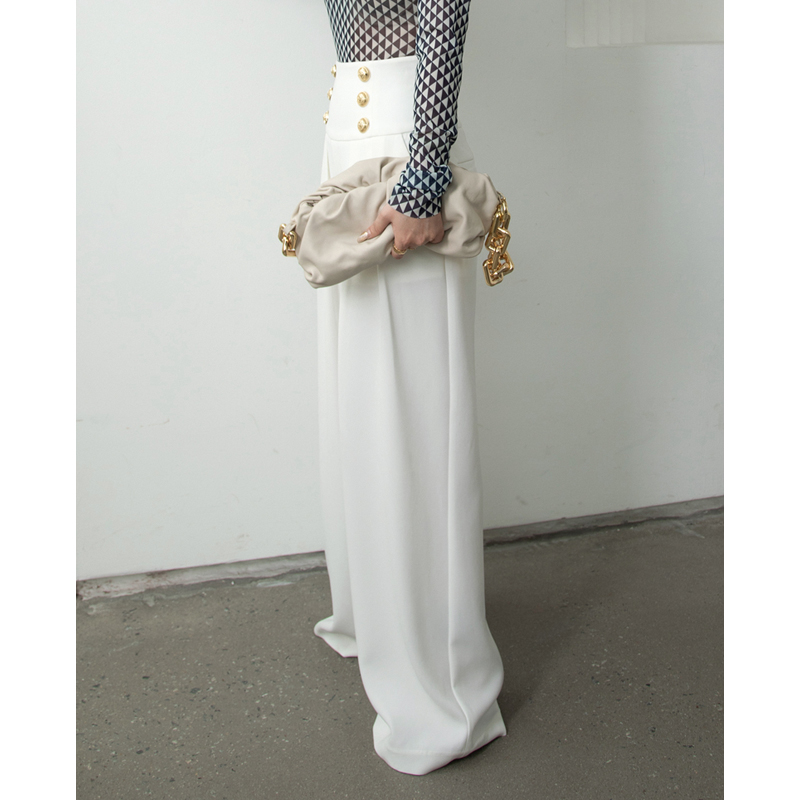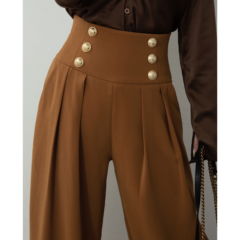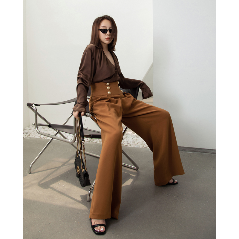 Boss Z high waist double-breasted European and American wide-leg trousers acetate crisp multi-fold commuter dress pants women