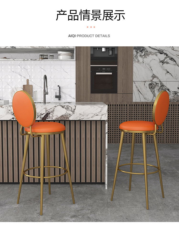 Bar chair Nordic light luxury ins wrought iron modern simple bar backrest gold front desk cash register high stool