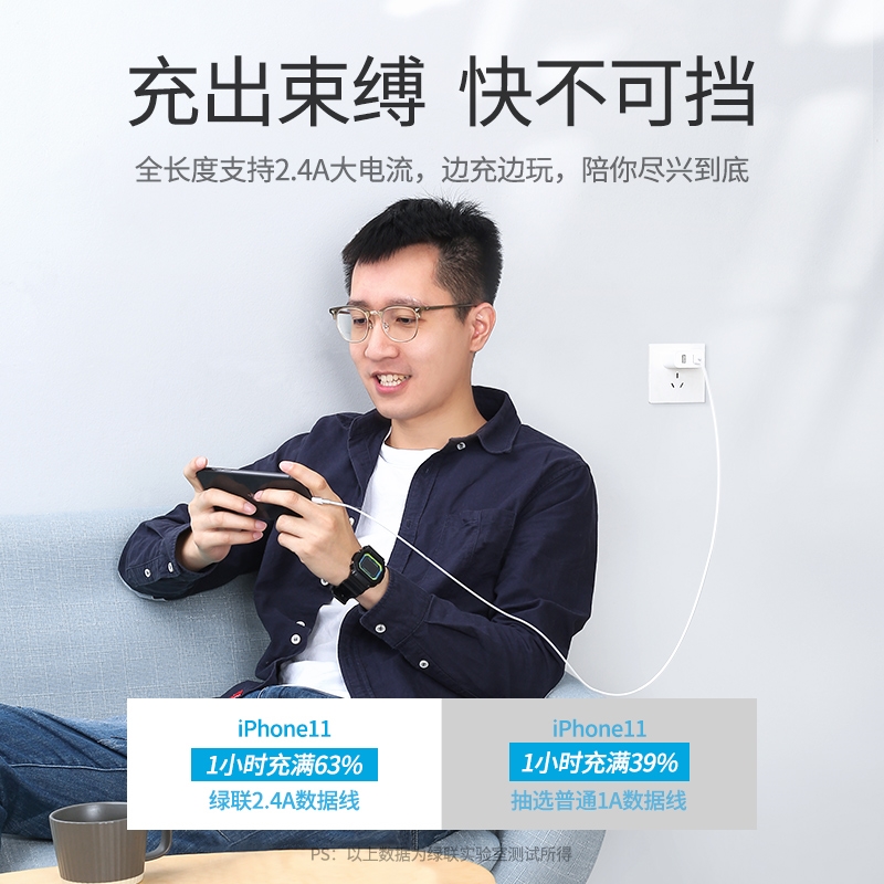 Green Union iphone7 data line Fast refill mfi certified to apply Apple xs11x 6s 8p xr mobile phone ipad charge