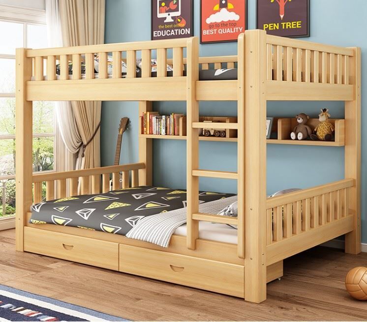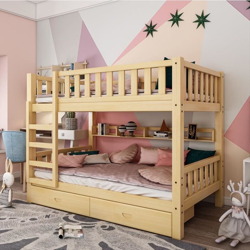 Light gray transparent log without paint bed 500mm*1200mm-H31 plus high crypto national standard bed Book frame drawer mattress*2 plus crypto national standard bed Drawer mattress*2-T70