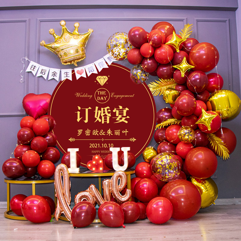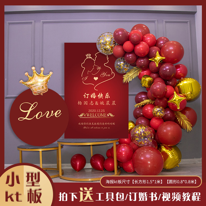 Engagement Background Wall Booking Wedding Banquet Scene Placement Net Red Trim Balloon Package Creative Wedding KT Board Poster Custom