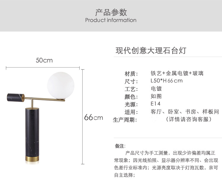 Designer living room model room marble showroom postmodern creative bedroom bedside hotel decoration ball table lamp