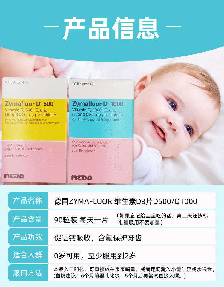 German vitamin VD3 tablets containing fluorine D500 infants and young children baby D1000 cod liver oil to promote calcium absorption