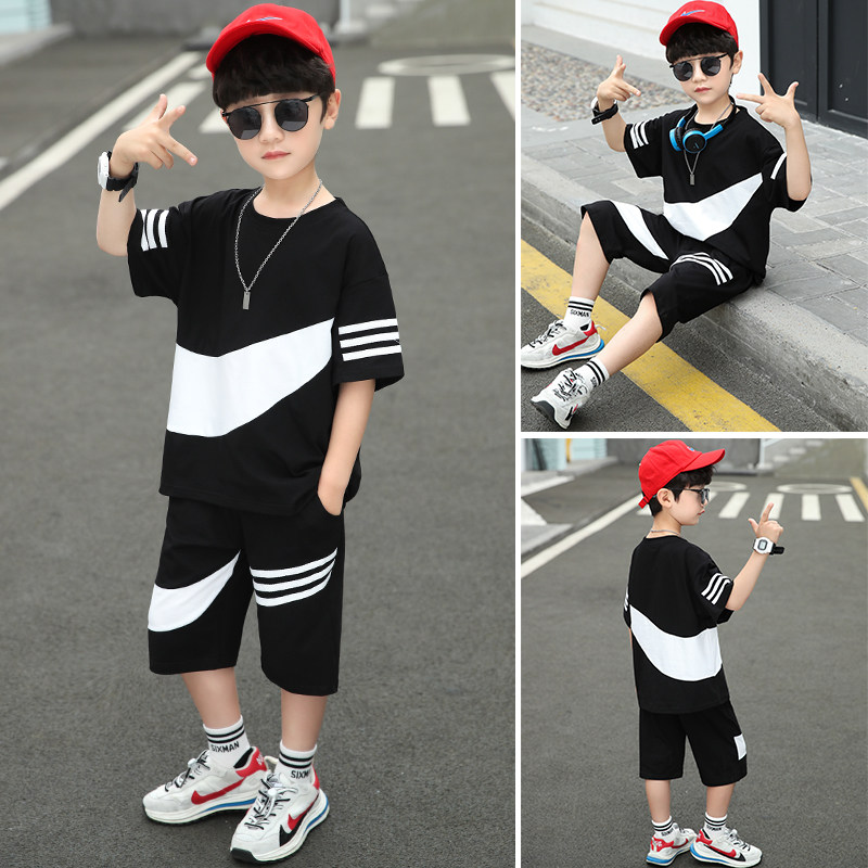 Boy Summer Suit 2022 New Foreign Pie Short Sleeve Sports Two Suits Trendy Handsome Children Han Edition Tide Children Clothing