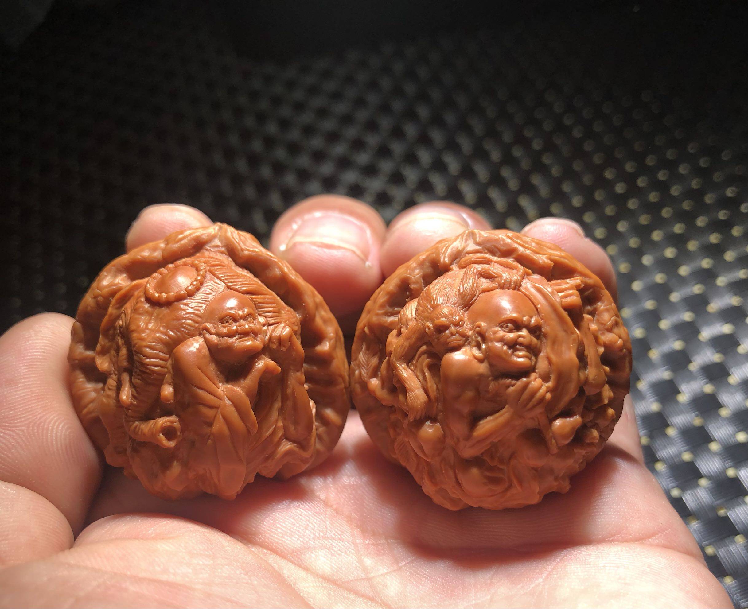 Vin Playing Walnut Pure Handmade Master Sculpted Sheng Rohan White Lion Special Price Concession Small Size Damo 100 Old