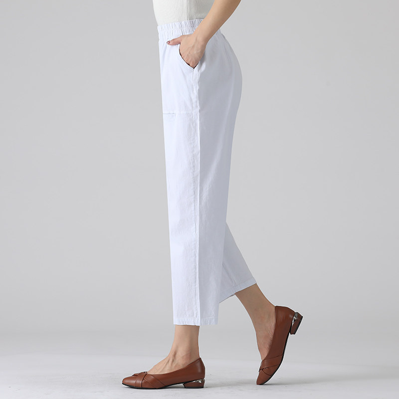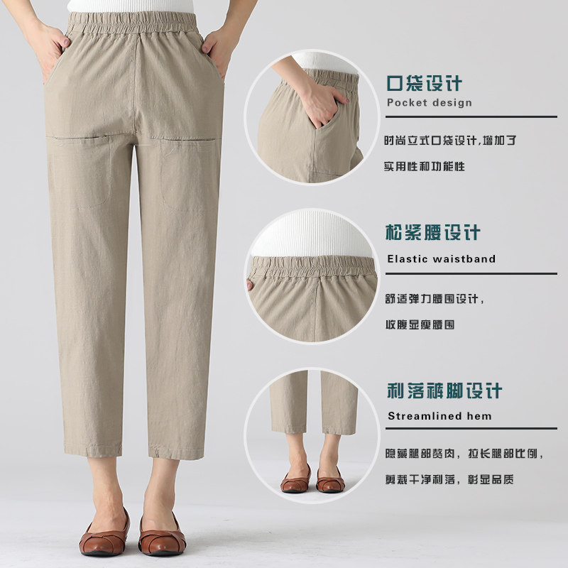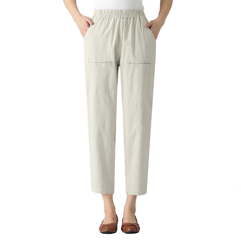 Mom summer dress thin elastic waist loose fashion casual pants middle-aged high-waist nine-point straight pants middle-aged and elderly women's pants