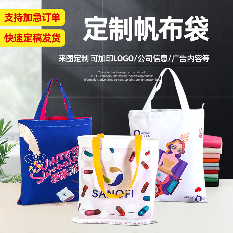 Canvas bag custom logo one shoulder canvas bag custom cotton handbag environmental advertising shopping bag