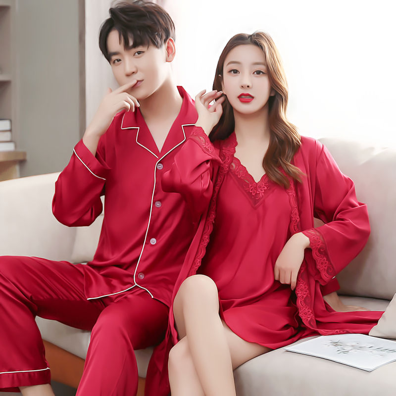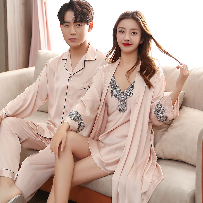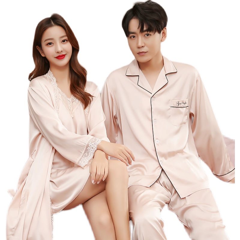 Ice Silk Lovers Sleepwear Summer Long Sleeves Men Suit Women Feel Harness Bathrobes Korean Version Casual Home Air Conditioning Sleeping Robes