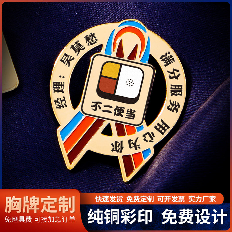 Round chest tailored pin-shaped metal gold plated badge enterprise logo stainless steel pure copper brand customization