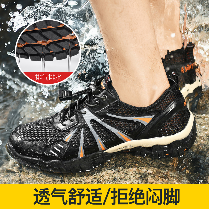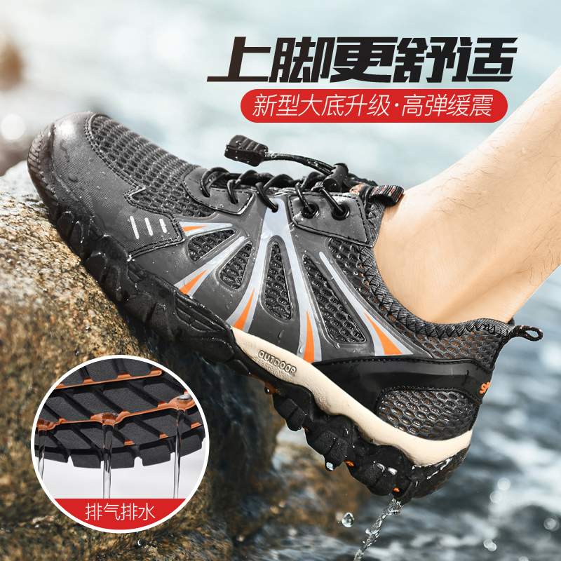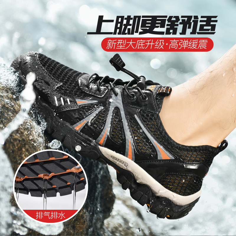 Western Regions Camel Men's Shoes New Summer Breathable Leisure Outdoor Hiking Upstream Wading Hollow Net Shoes Quick Dry