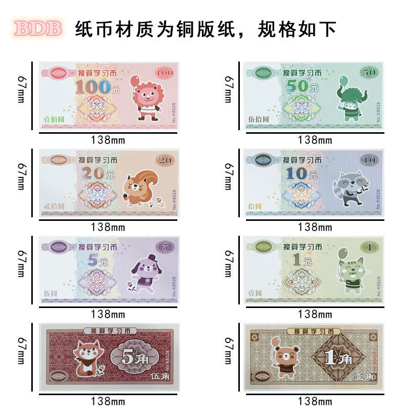 A second grade primary school student RMB study appliance children know numismatic teaching aids like coin-like note teaching aids