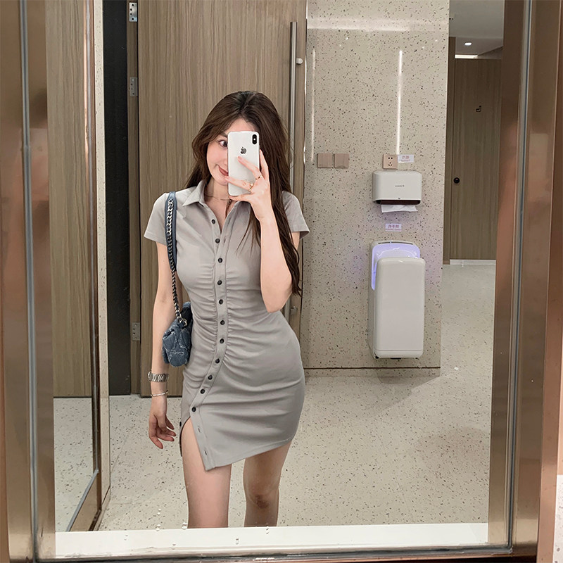 DoggyQin romantic to death 2021 summer couple wear polo slim dress women's short-sleeved top