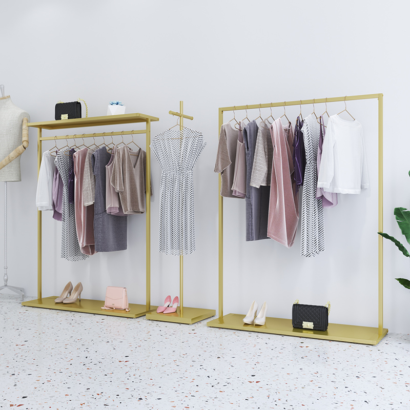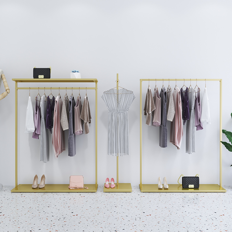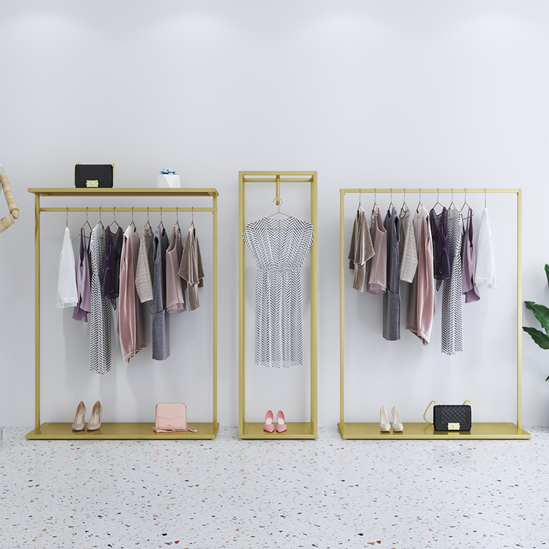 Gold minimalist clothing store display stand floor-standing hanger women's clothing store shelf wrought iron clothing clothes rack - Taobao