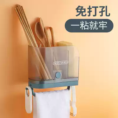 Chopsticks cage barrel nail-free perforated household kitchen wall-mounted plastic drain tableware rack chopsticks storage box