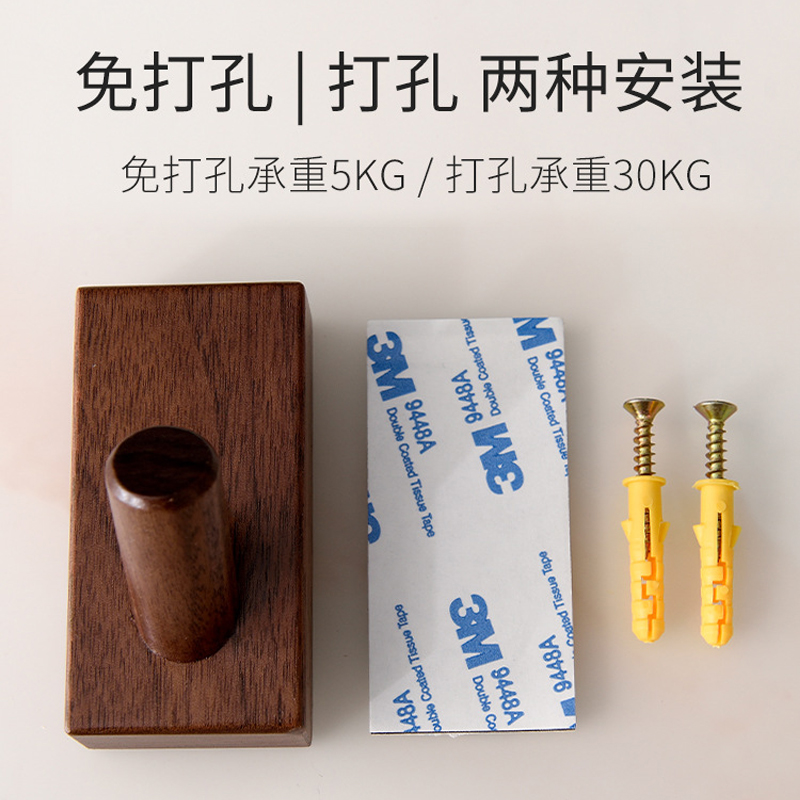 Nordic home solid wood adhesive hook creative porch Wall Wall fitting room coat hook non-perforated door back hanger