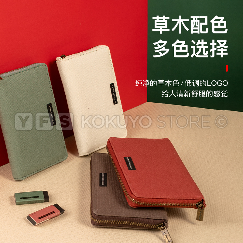 kokuyo Guoyu one meter new pure hand account storage bag small portable double pocket pen bag travel simple certificate bag stationery hand book storage bag Green red white retro