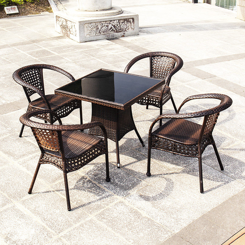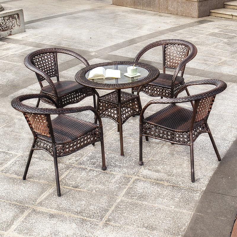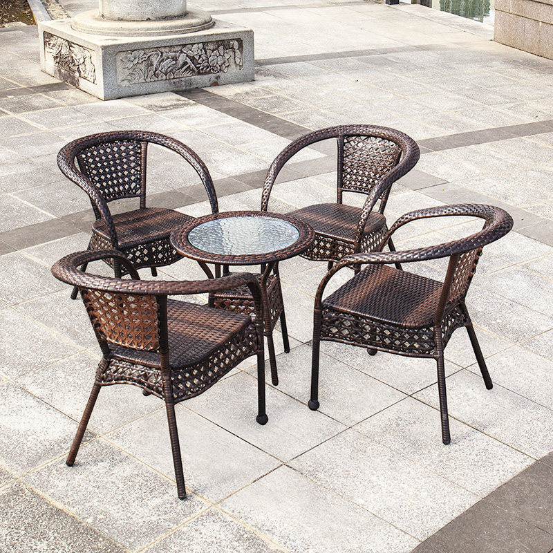 Outdoor table and chair courtyard balcony rattan chair three-piece combination home villa dew rattan chair leisure simple small coffee table