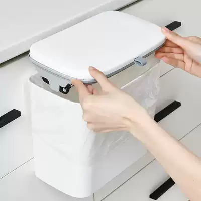 Kitchen waste sliding lid trash can with lid household desktop plastic storage tube kitchen special wall-mounted integral cabinet trash can