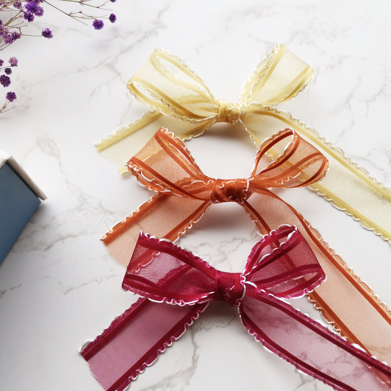 Exquisite tooth edge snow yarn with purple ribbon handmade hairpin material diy bowknot clothing accessories flower gift