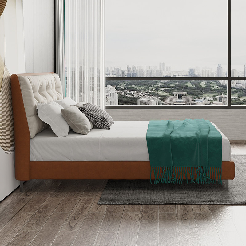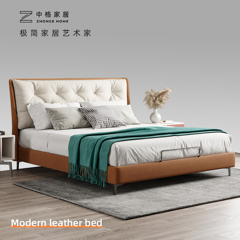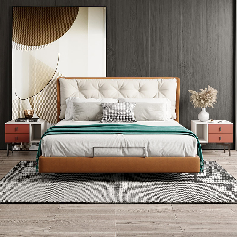 Medium Lattice Light Extravaganza Modern Minimalist fabric Bed Free of washing Soft Package 1 8 Double beds Science and technology cloth Fashion creative wedding bed