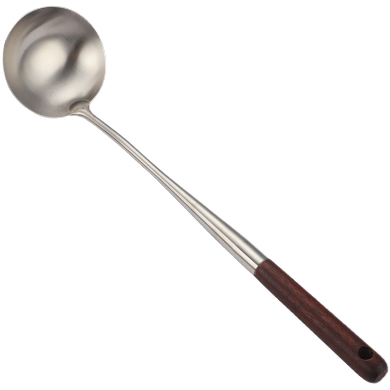Lengthened 304 stainless steel frying spoon one-piece wood handle Kitchen Home Sheng Soup Spoon Saute Spoon Pan Spoon Big