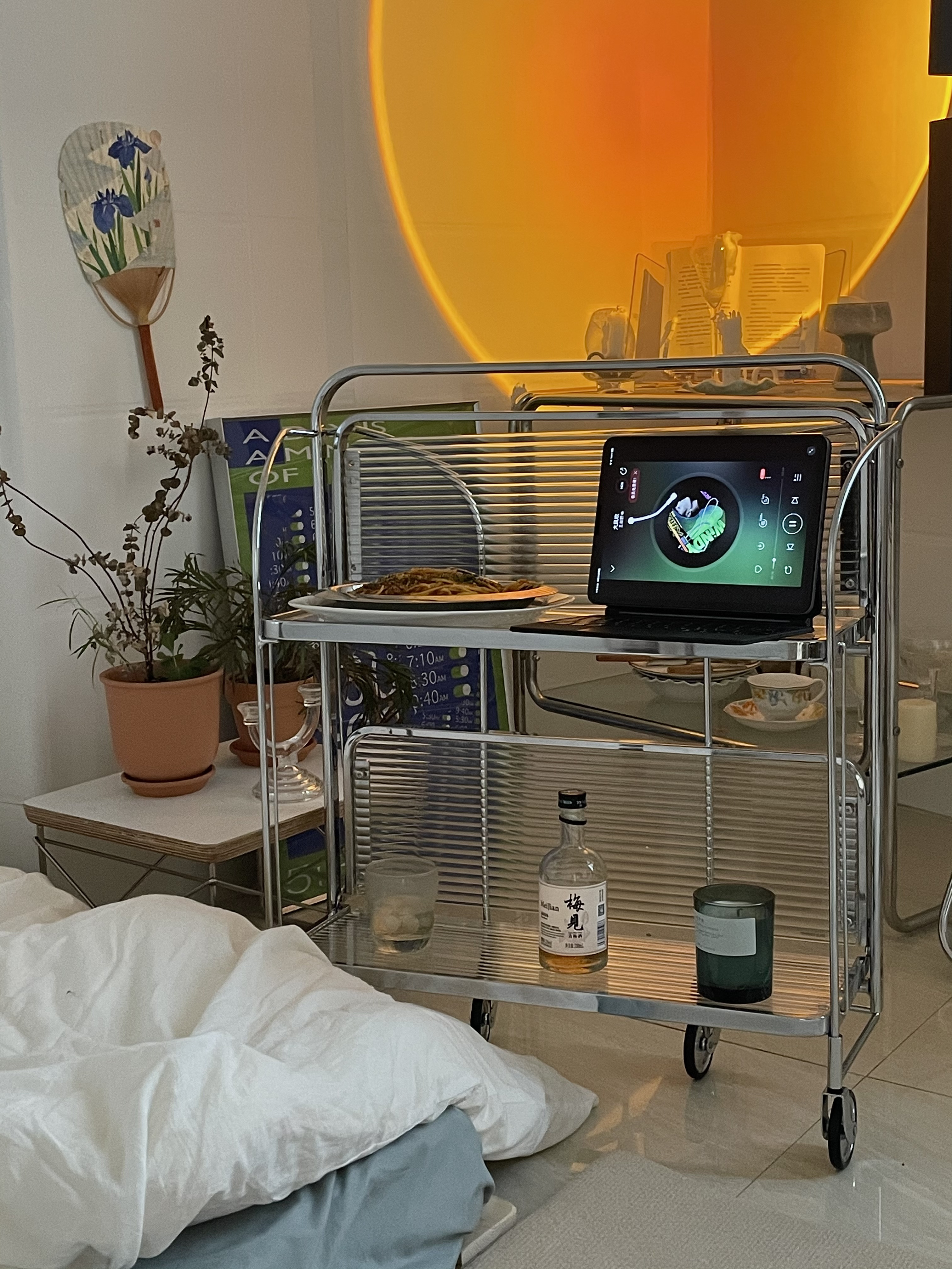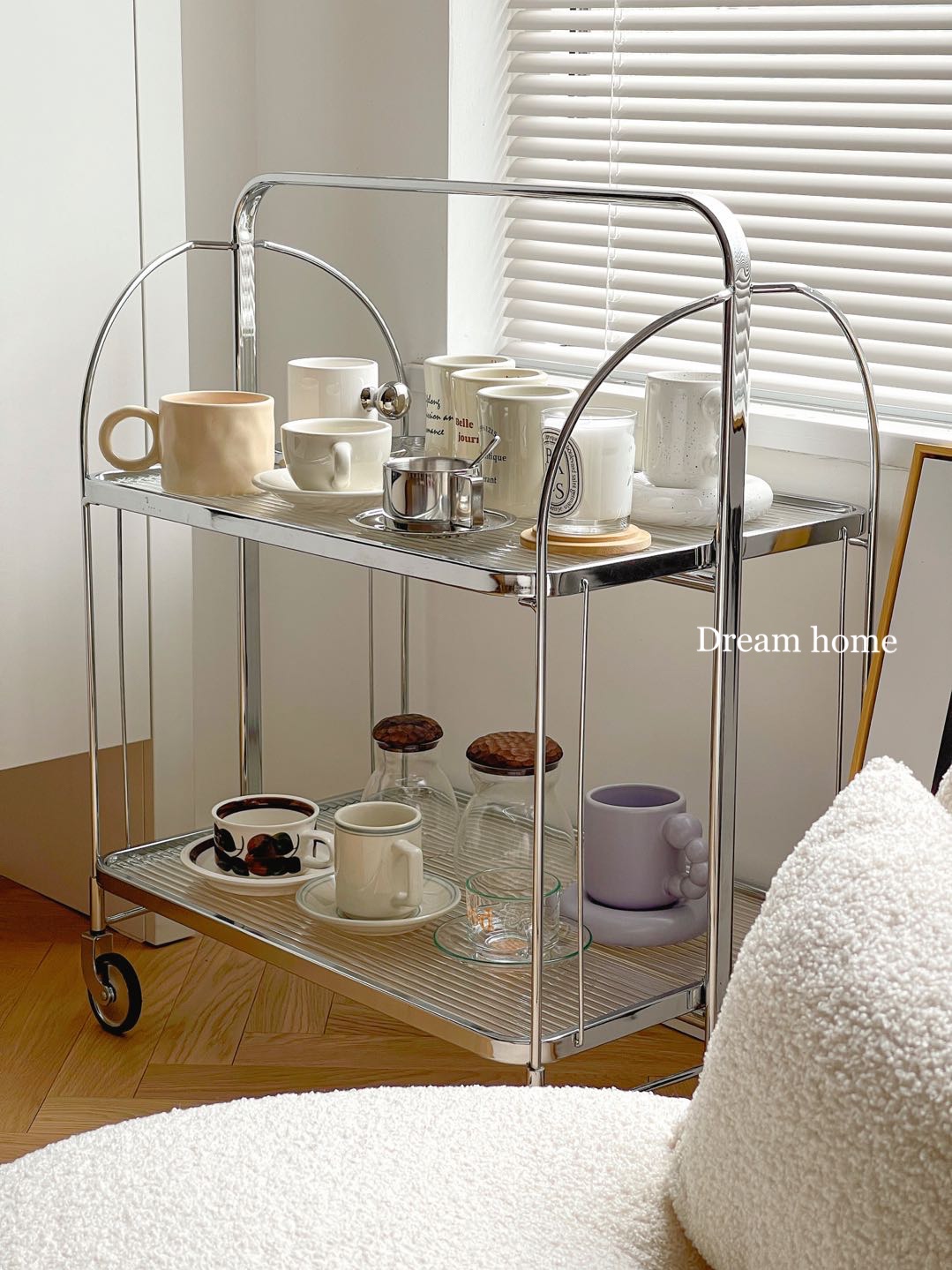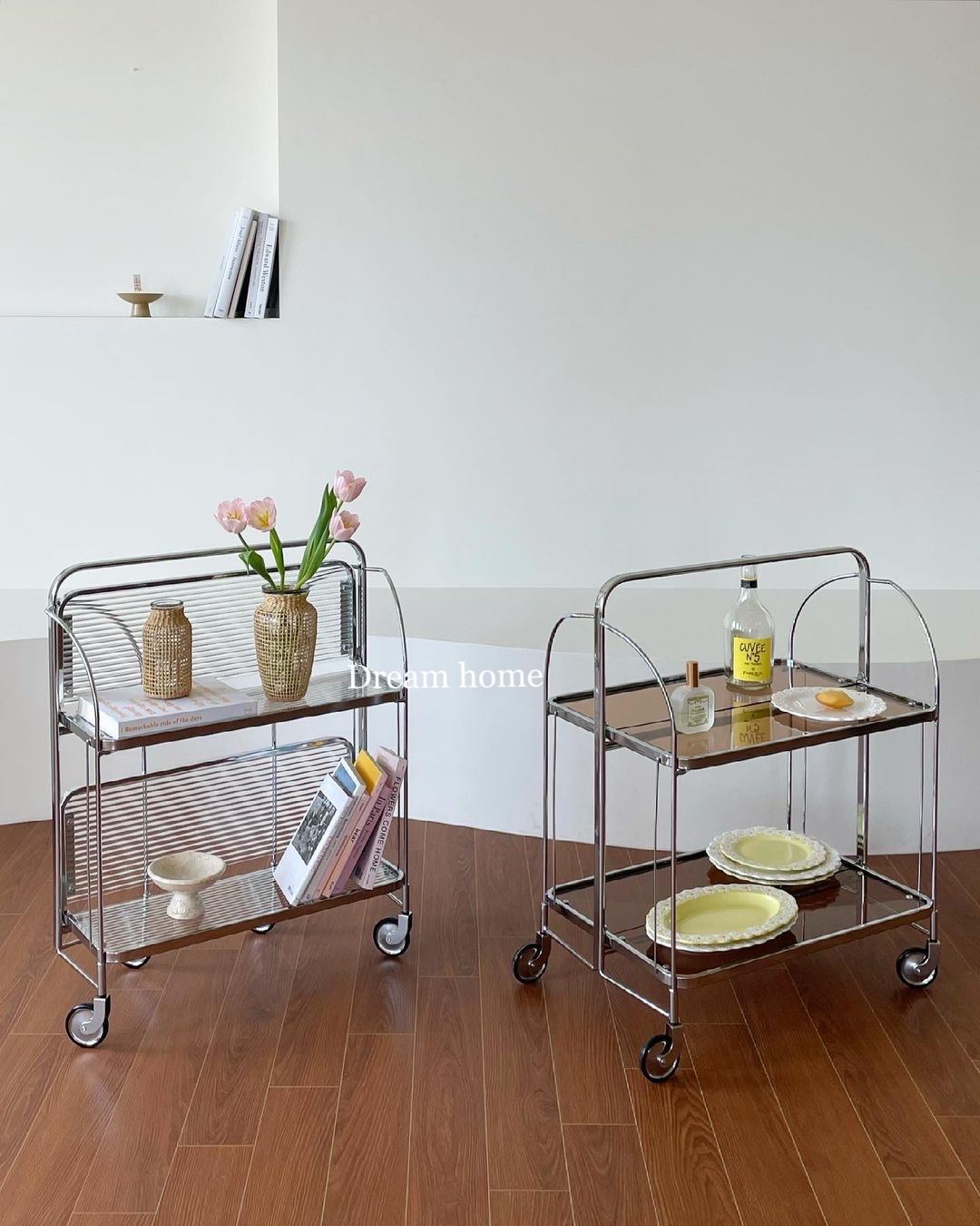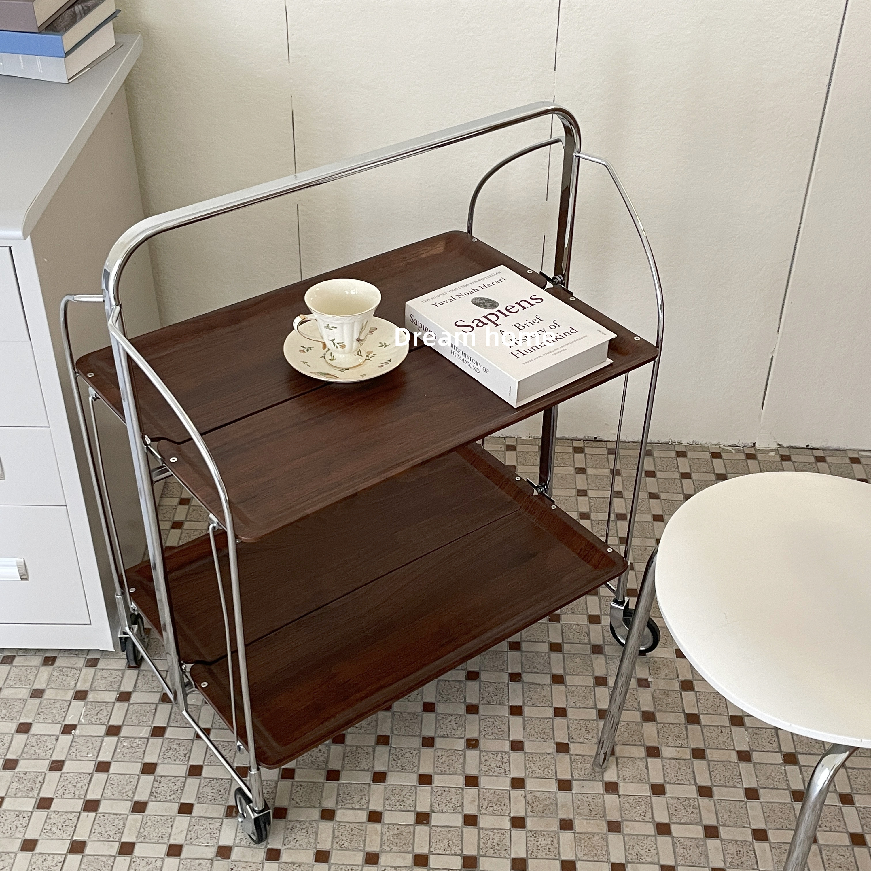 Dream home vintage engraved folding trolley movable designer dining car vintage vintage side table