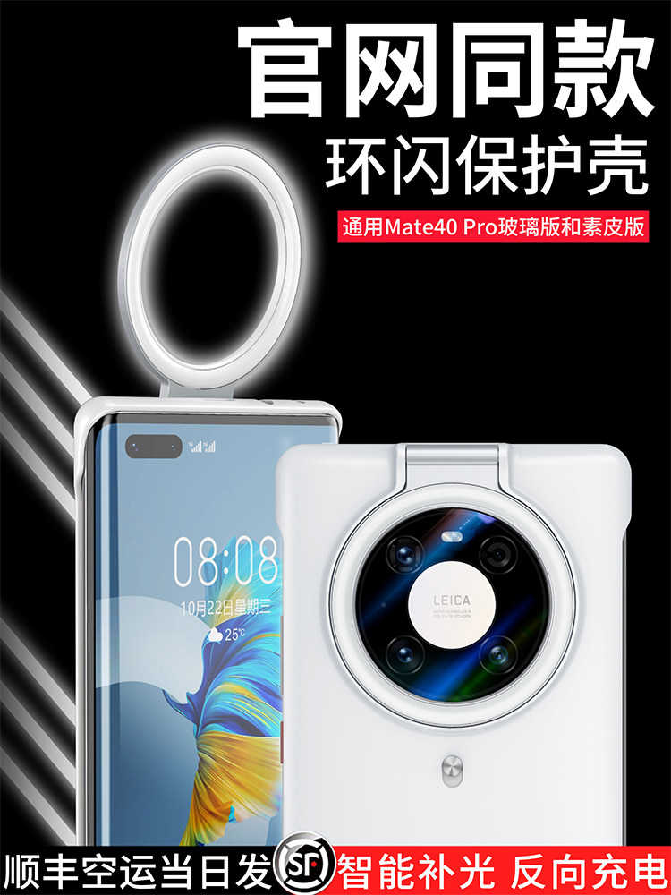 Suitable for Huawei mate40pro mobile phone protection shell ring flash-no-frame anti-fall limited vegetarian leather version Spotlight Beauty face Divine Instrumental mete40por selfie LED halo protective shell mesh red female
