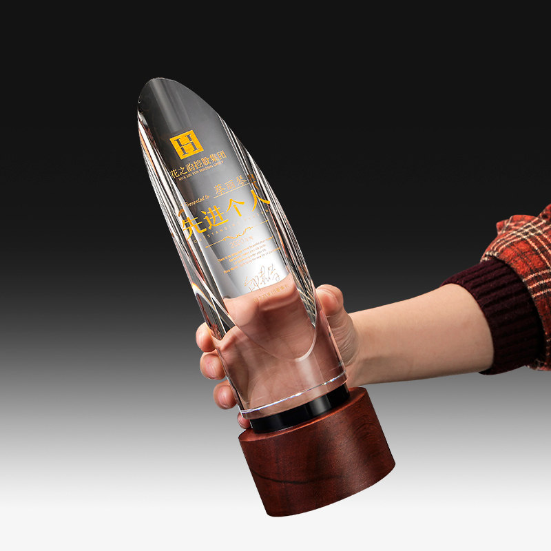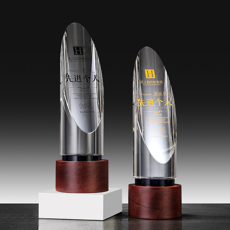 Crystal Trophy Medal Custom Upscale Wooden Trophy Creative Bevel Cylindrical Trophy Wholesale Customization Volume