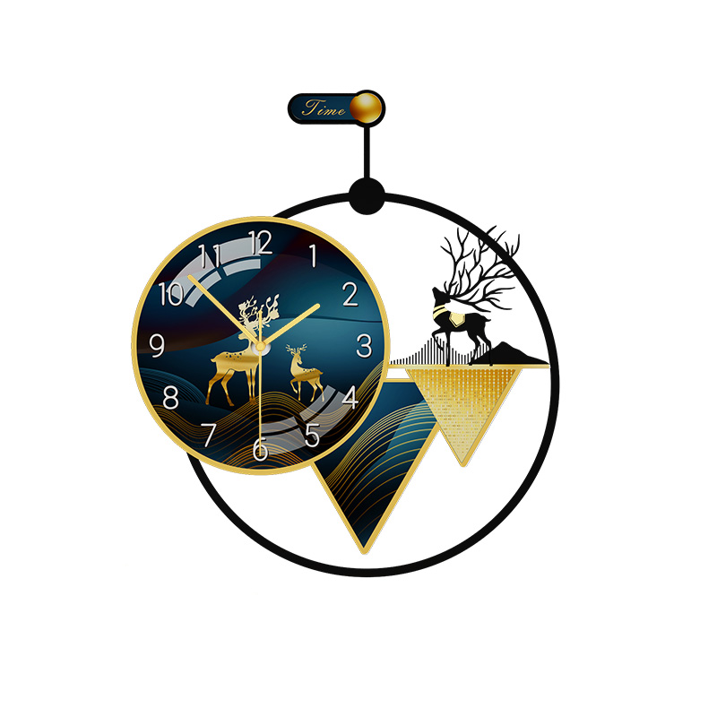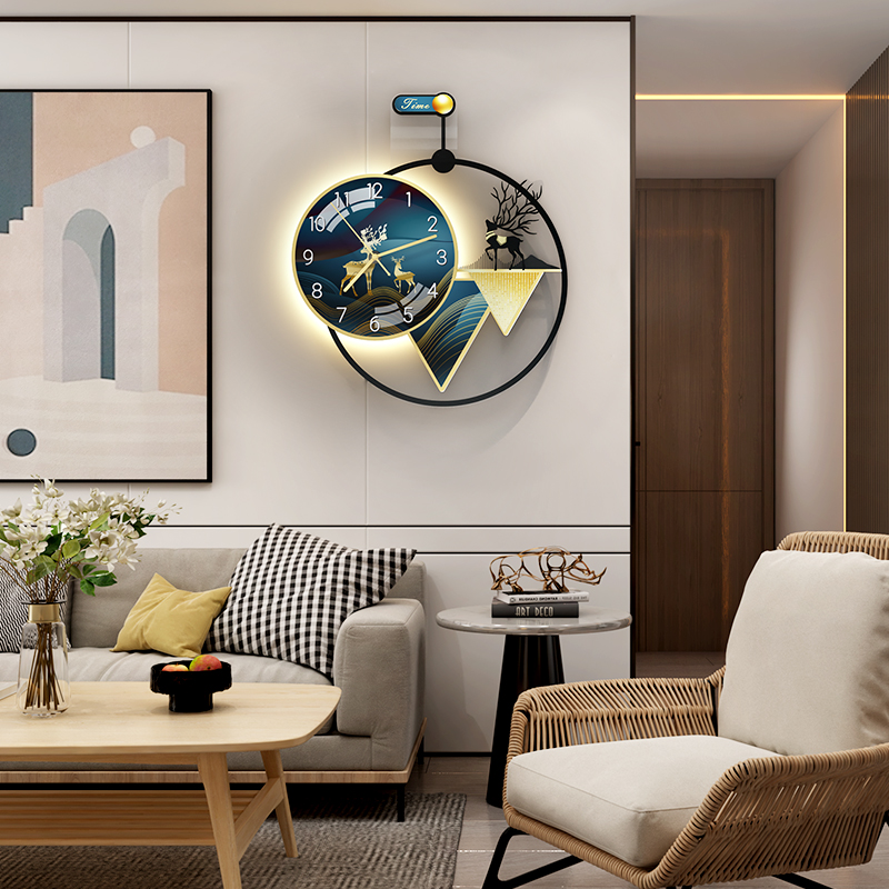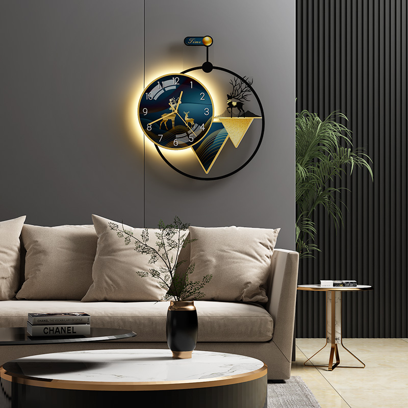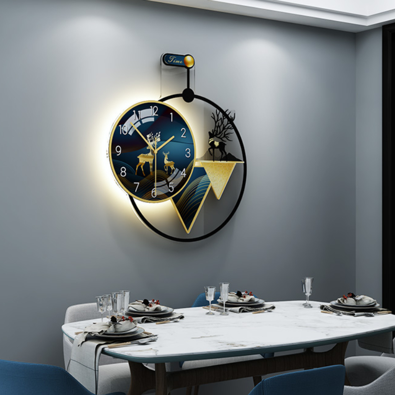 2021 new minimalist living-room hanging bell modern dining room home hanging wall watches and clocks fashion light lavish red clock wall lamp
