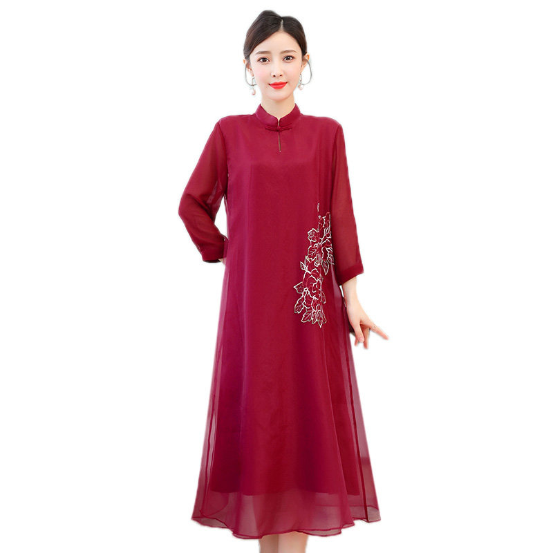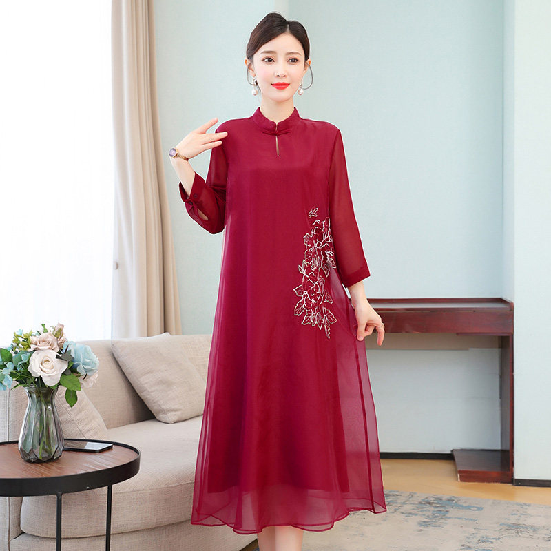 Noble hi mother-in-law mother wedding dress red cheongsam dress female spring autumn winter dress to attend the wedding wedding dress