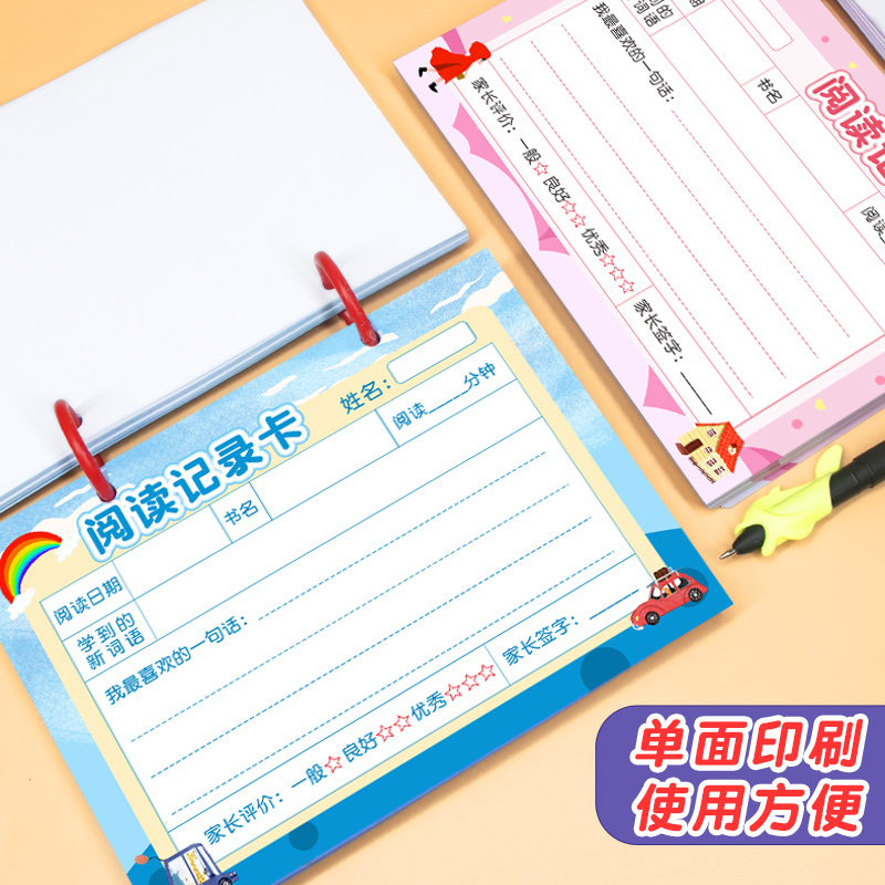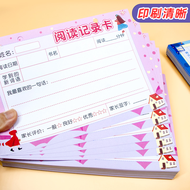 50 sheets of blue reading record card 100 pink reading record card 200 sheet pink reading record card 50 pink reading record card 200 Zhang blue